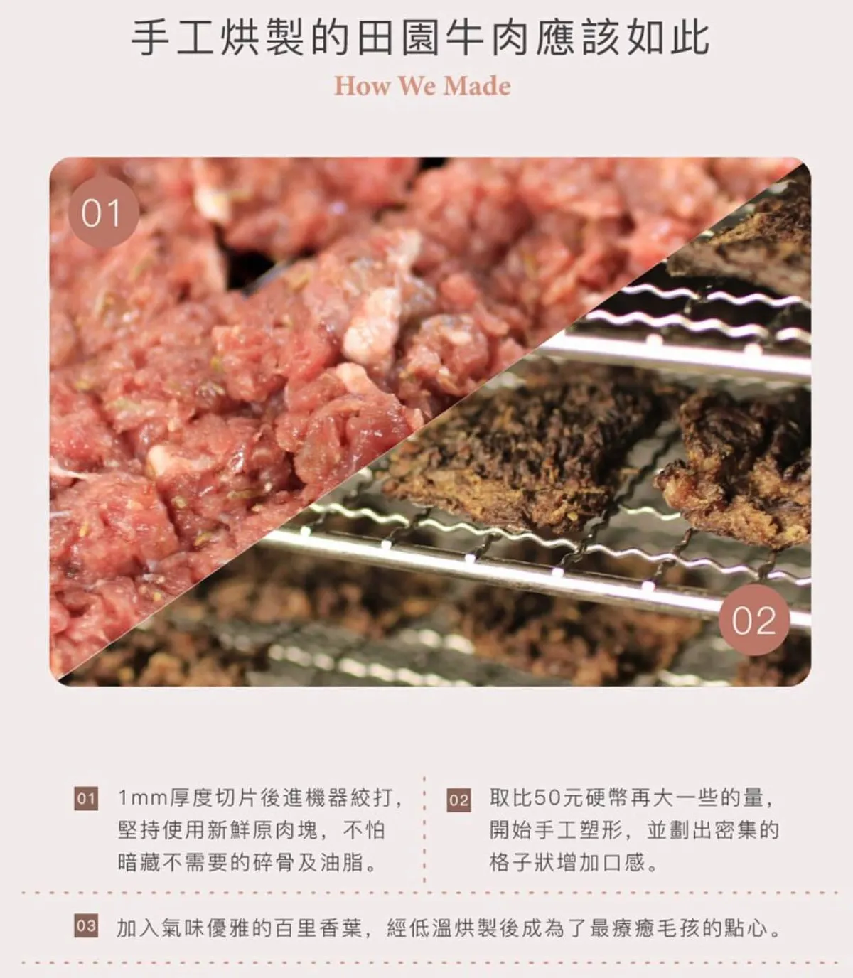 5.保存方式: 每款天然手作寵物零食皆無添加任何防腐劑、化學藥劑,為確保新鮮與延長保存,開封後請放置於冰箱保存,並儘早食用完畢!我們貼心的使用高阻隔包裝袋,並放置足量的脫氧劑與乾燥劑,零食可直接收納於夾鏈袋中方便取用。