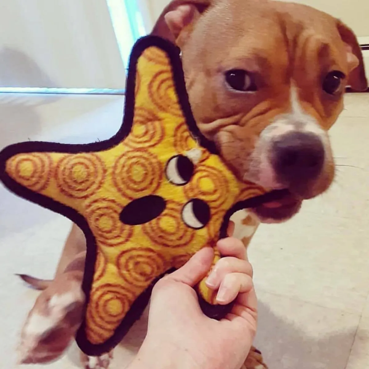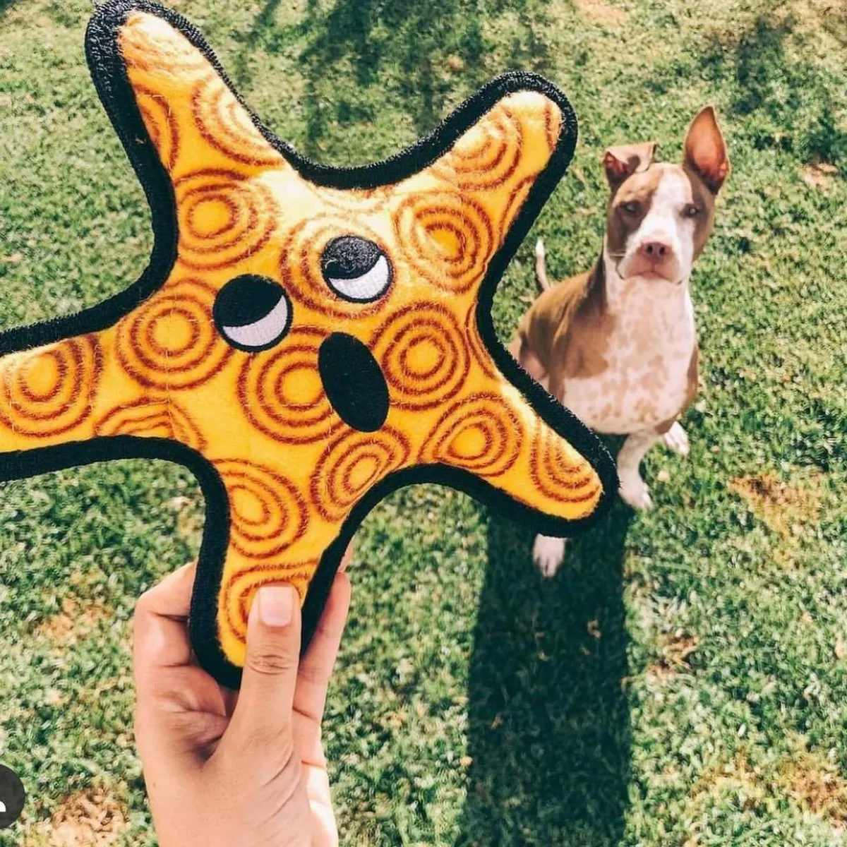 美國 𝐓𝐮𝐟𝐟𝐲 ~老虎也能玩 獨家耐咬車縫設計 三層厚布料抗撕毀 全包邊車縫 怪獸專用等級 可機洗可浮水 𝐓𝐮𝐟𝐟𝐲在美國加拿大都是戶外犬隻、暴力犬隻 如挪威納、狼犬等,在玩的怪獸專用等級〈 啃啃大海星 〉 國外最熱銷的款式94它!!! 約25x25公分,比我的手掌還大 耐髒又顯色,帶去草地玩也不容易消失 每一支角角都可以啃了再磨、磨了再咬 是最舒壓(爽)的玩樂方式 內建一顆啾啾,超級大推