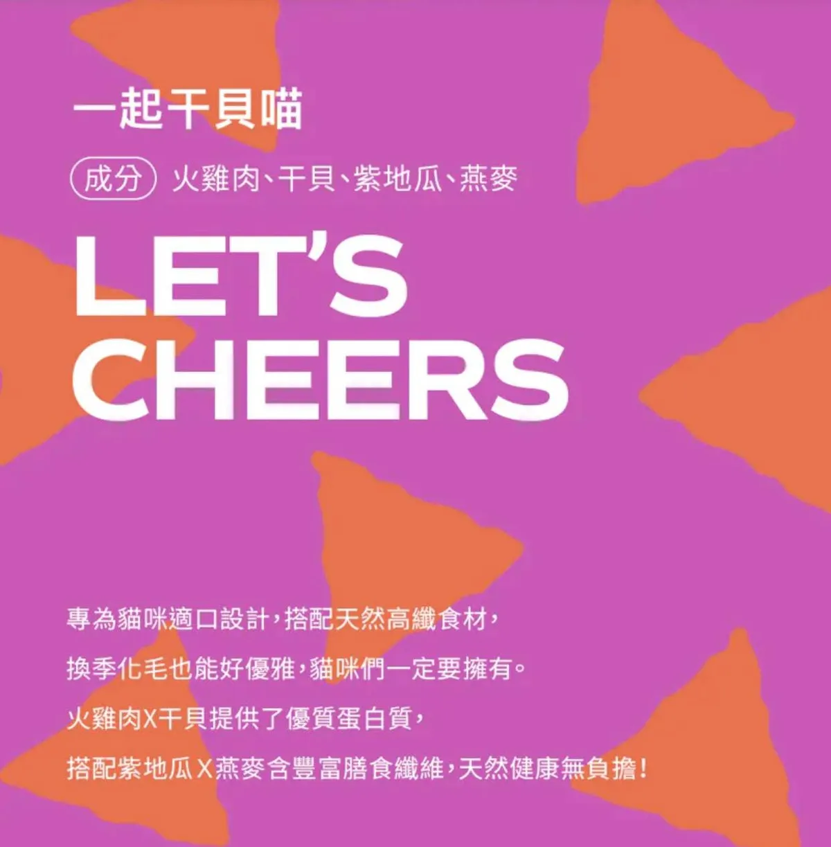 火雞肉、干貝提供了優質蛋白質,再搭配紫地瓜與燕麥含豐富膳食纖維,天然健康無負擔!