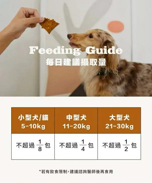 3.僅適用於貓狗食用,任何零食建議在飼主看管下食用。