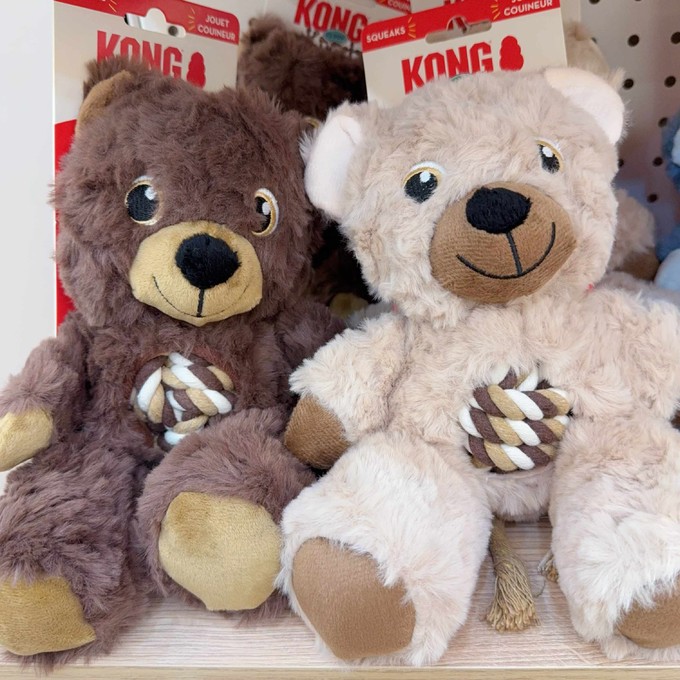 美國KONG 2025最新ROPE KNOTS 肚肚熊系列大號約20*23cm顏色限定:深咖/淺咖熊熊坐姿立體挺拔毛絨極度柔軟彷彿羽絨被被雖然KONG沒有自詡是耐咬玩具但肚肚熊系列我非常推薦幼犬和暴力狗買ㄛ繩結最普通就是用編織的方式成繩組串很少有球狀又鑲在毛絨玩具裡的大家仔細看影片熊熊背面還有小馬尾繩結真的可以讓狗狗耗費心力拆非常久KONG品質穩定輸出送禮自用兩相宜交換禮物絕對有面子的那種內建一顆啾啾