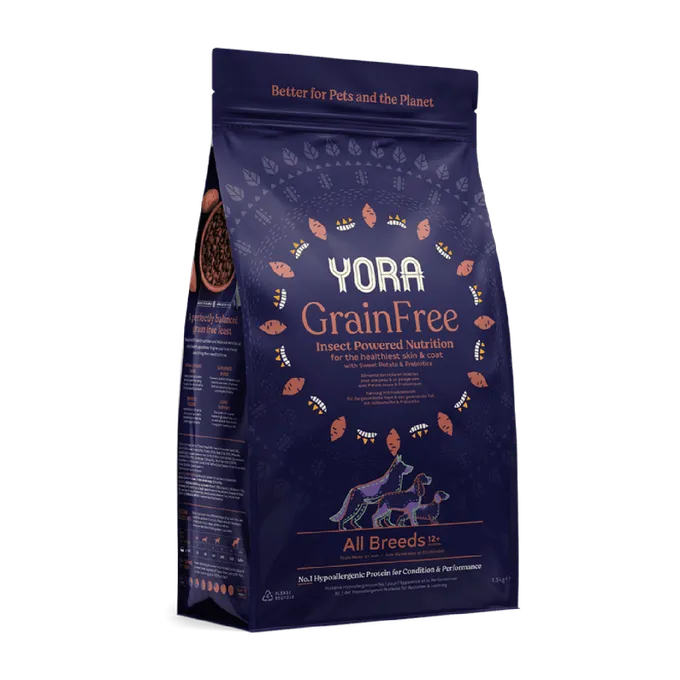 YORA無穀全犬種完整配方,是一款均衡營養且低過敏成分的新型態蛋白質飼料,適合12個月以上的成犬。