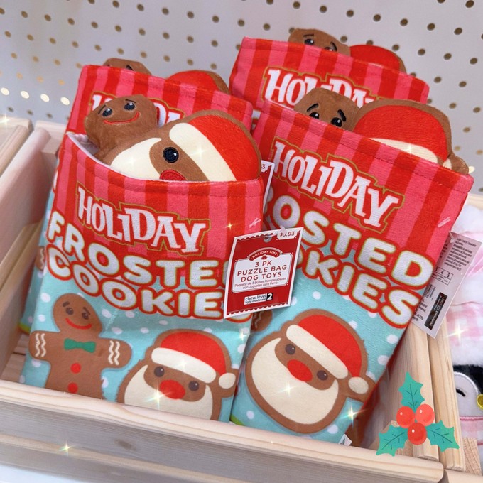 袋子約22*17cm內建的兩個小玩具11~13cm超級好玩的百寶袋!袋封口有魔鬼氈,可以黏得很牢固把肉肉零食和小玩具都塞進袋中整包丟給小狗玩保證瘋掉造型超級應景 印刷也超美的這款售完沒有補貨 要趕快入手!!!