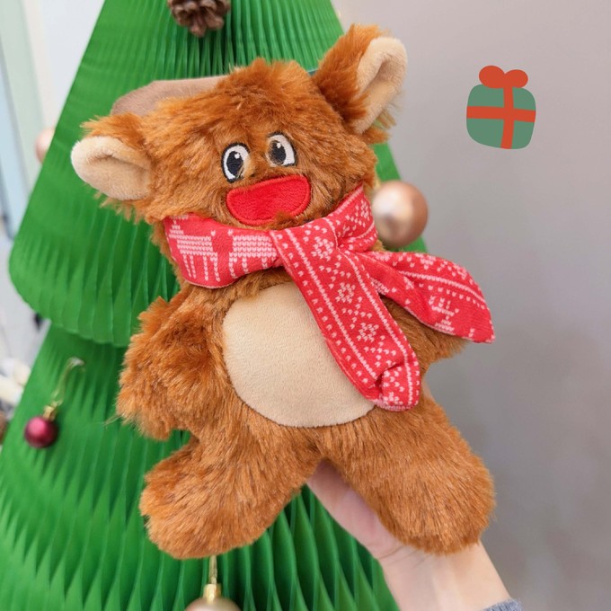 今年聖誕節不知道挑哪個禮物給小狗首選就是這隻扁扁麋鹿紙牌背面有做小卡設計To / Love From(請看影片)拿來送禮最適合 連卡片都免了毛絨舒服 造型應景扁扁的身體完全不挑狗狗體型吉娃娃博美到哈士奇都可以一口咬住內建一顆啾啾