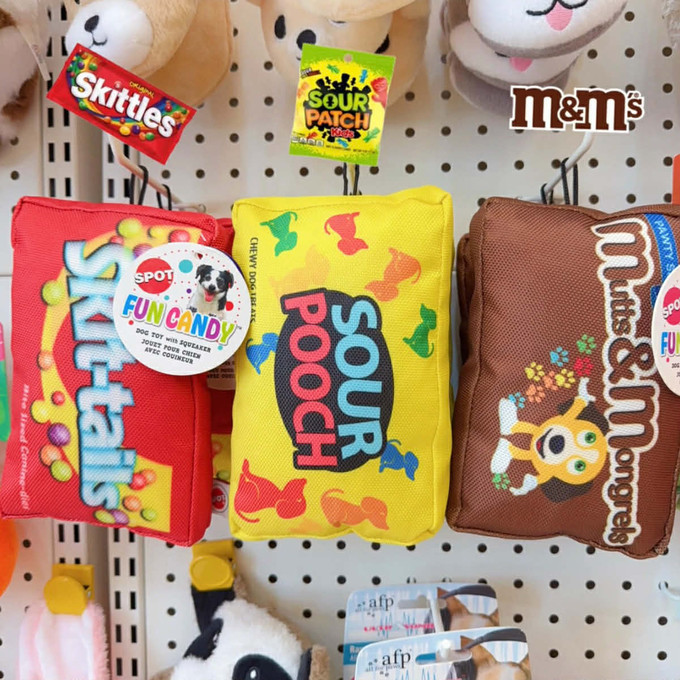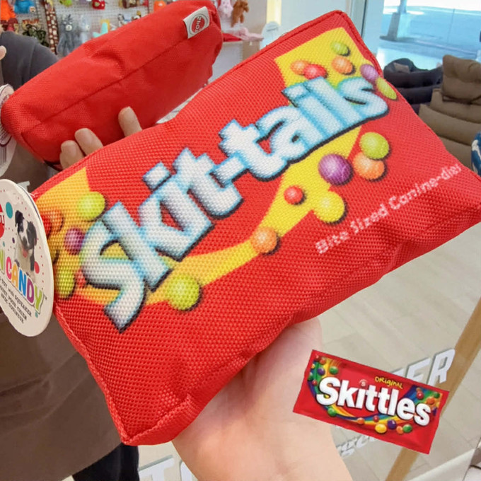 夏天的玩具終於來了整體都是耐咬的牛津布耐磨耐啃 比一般毛絨更強韌也不易沾口水 玩久也不臭臭整包都是響紙聲內建一顆啾啾標準M號玩具扁扁一個 比熊貴賓也能咬起來顏色飽和漂亮美式糖果袋紅+黃+咖=包色只要$580一包不用兩百塊!超划~