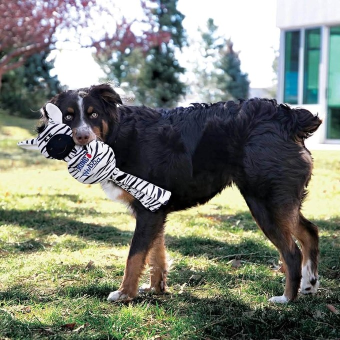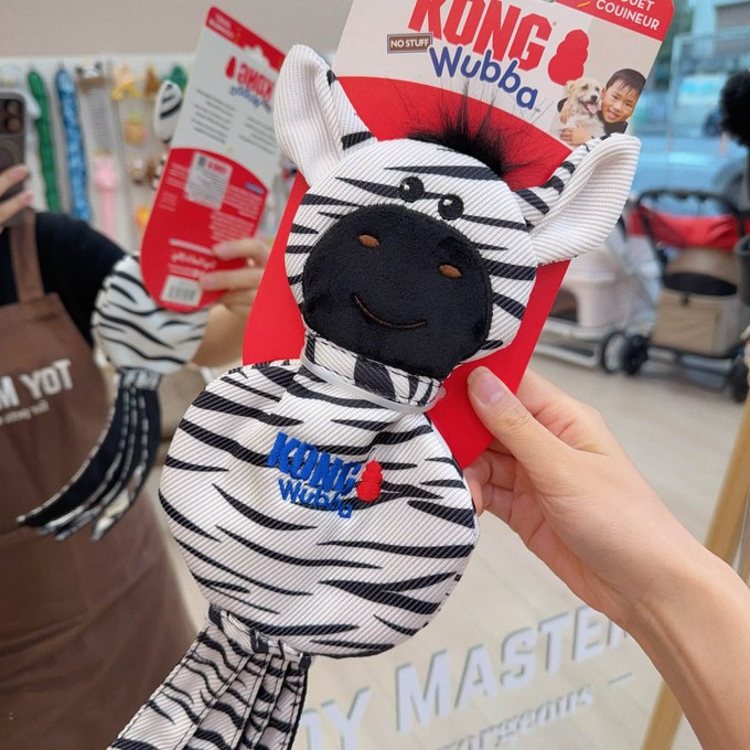 40*15cm 又薄又大片KONG很少有這種0棉花的玩具而且整體又是加厚的牛津布不僅耐咬也不易吸口水臭臭以往的WUBBA系列都是用球或棉花塑型但這款斑馬是用圓餅發聲器+響紙去取代質感非常好 送禮自用兩相宜的那種雖然尺寸很大但薄身設計不太限制狗狗的體型幼犬小型犬也可以咬得起來磨牙啃啃最舒服就算真的被咬爆破掉也不會噴棉花 簡直不要太棒無敵星星大推!